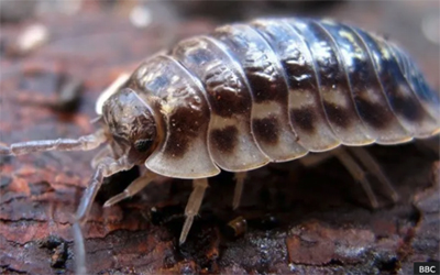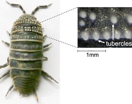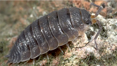 Fig. 2. Rollypolly isopod Armadillidium vulgare, so named because it can roll into a near-perfect ball when disturbed. Members of the genus are well-adapted for life on land, and inhabit drier locations than most other oniscideans