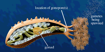 The topic of Sea cucumbers: Reproduction is covered in 4 sub-sections: GONAD GROWTH, FERTILIZATION & SPAWNING, LARVAL LIFE & BROODING, & METAMORPHOSIS & SYMMETRY.