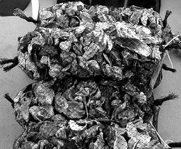 Fig. 1. Bags of oyster cultch used to collect juvenile Apostichopus californicus