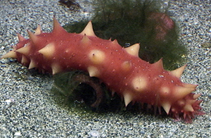 Fig. 1. A juvenile Apostichopus californicus (length, 5cm). At this early age the tubercules retain features of the tube feet, including an open pore at the end, from which they ancestrally derived